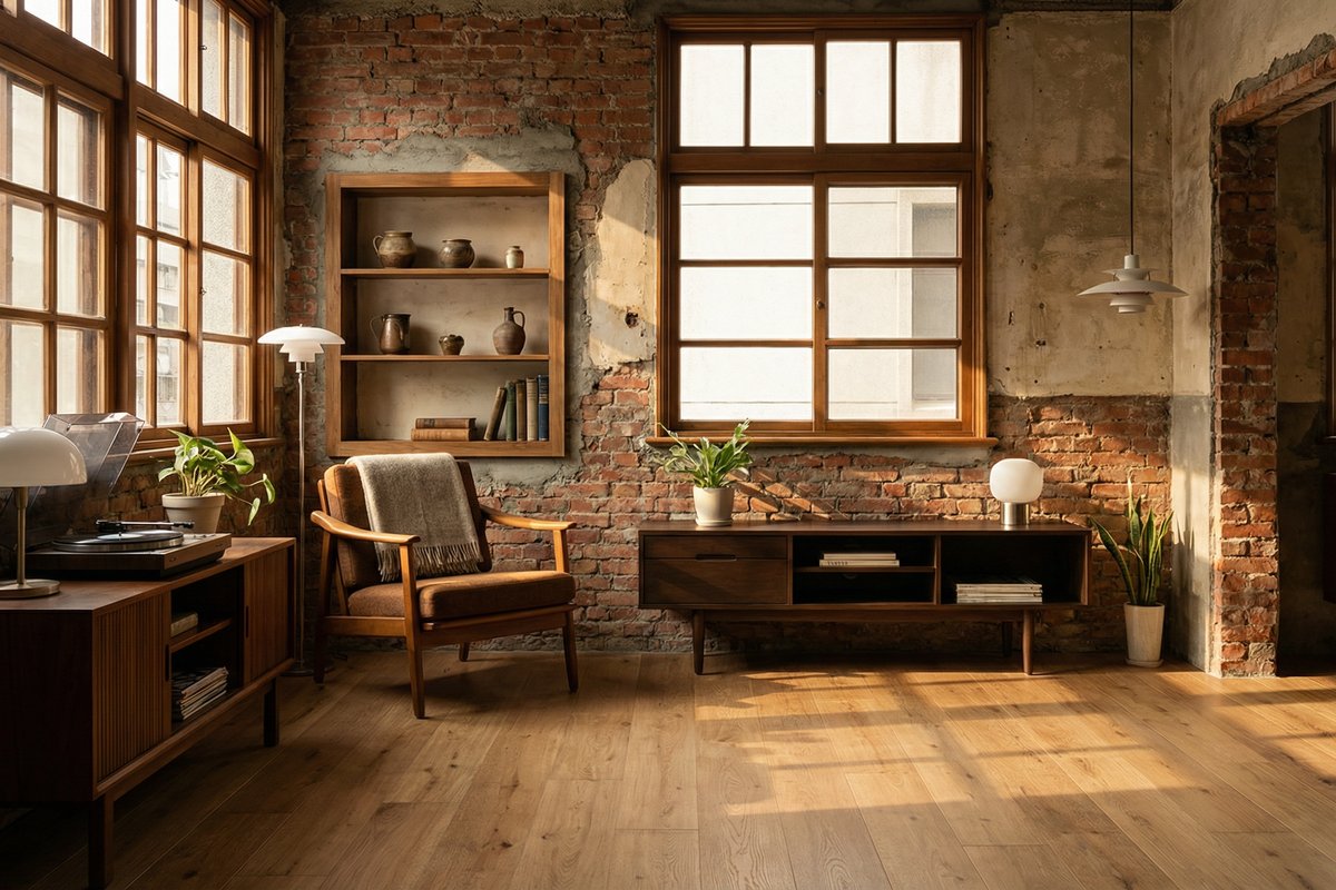老屋建議選擇中性溫潤色調,例如歐巴地板哥本森林。這種介於深淺之間的橡木色,能與老屋的歲月感產生共鳴,不會格格不入,反而讓空間更有溫度與層次感。